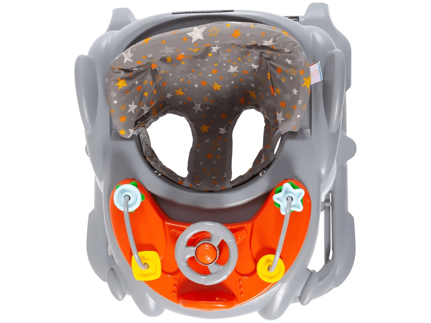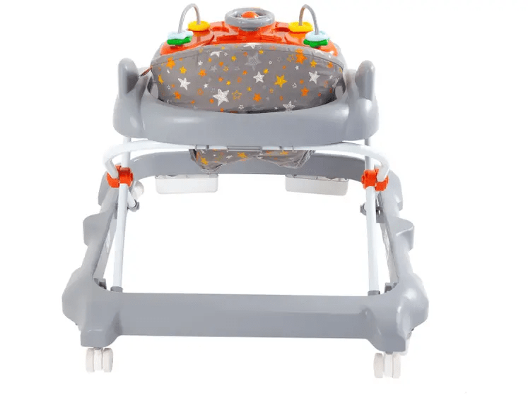 O andador infantil Torino Estrela da Galzerano é recomendável para crianças que já consigam permanecer sentadas sem auxílio (a partir de aproximadamente 6 meses de idade). Possui assento com encosto acolchoado, confortável e fácil para limpar. Possui bandeja de brinquedos, regulagem de altura em 3 posições do assento. Tem 2 rodas dianteiras giratórias e 2 rodas traseiras fixas, mecanismo de travamento para desníveis, com 6 sistemas de freios para maior segurança. Os pequenos irão adora a liberdade que o produto proporciona.