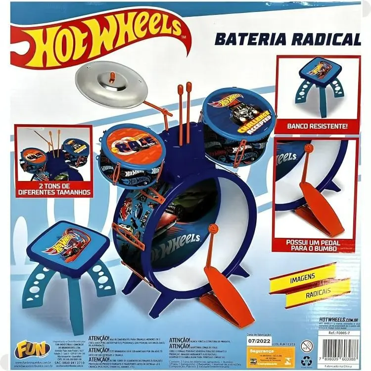 Conteúdo da Embalagem: 01 Bateria Infantil Radical Hot Wheels
