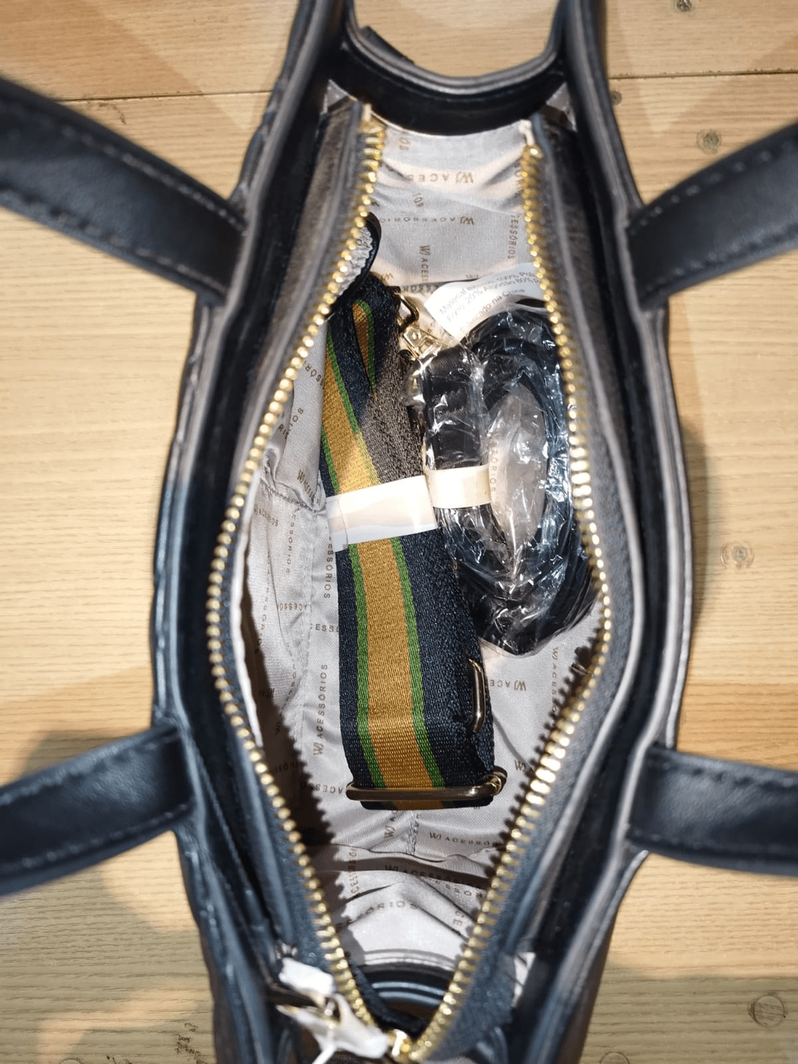Características: FECHO EM ZÍPER, BOLSO INTERNO, ALÇA DE MÃO, ALÇA LONGA COM REGULAGEM