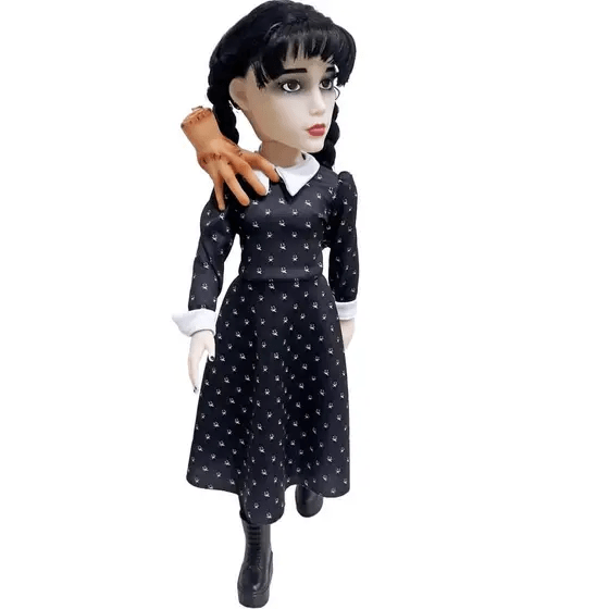 A Baby Brink trabalha para oferecer às crianças brinquedos que contribuam para o seu desenvolvimento físico, intelectual e emocional, para que elas se tornem adultos capazes e felizes. As crianças vão se divertir com a boneca da amada personagem de Família Adams: Wandinha!! Direto da série da TV para você, ela vem com os cabelos longos, de trancinha, seu vestido preto característico e super estiloso e um lindo par de botas. E não podia faltar sua inseparável companheira, Mãozinha feita em vinil para criarem as mais divertidas brincadeiras.