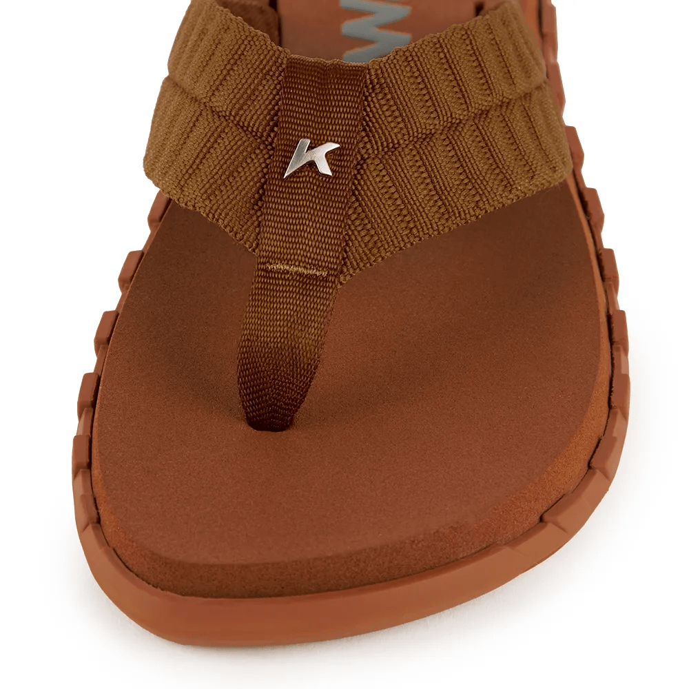 Novo cabedal com tira tramada em gomos na cor marrom, em material macio e flexível |