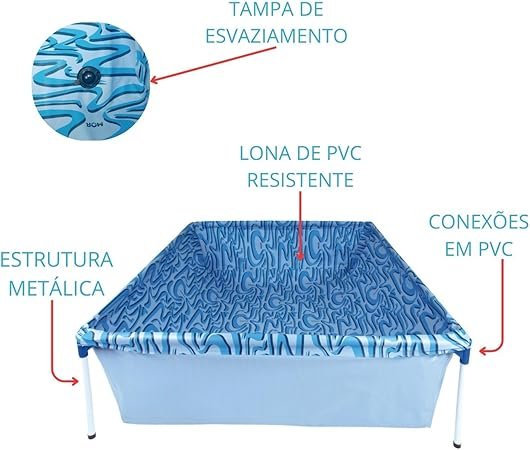Atenção! A lona em PVC é leve e resistente, mas a piscina não deve ser transportada com água em seu interior.