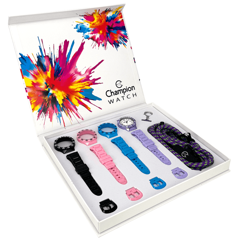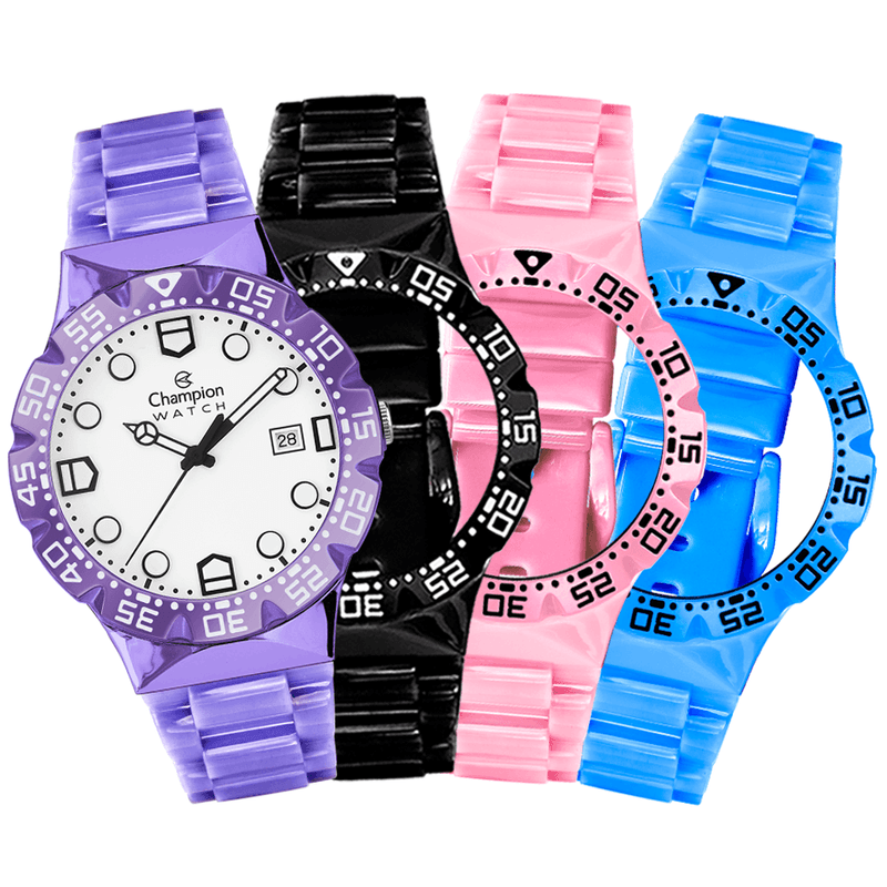 O Champion Troca Pulseiras apresenta uma caixa metálica de 42mm acompanhada por quatro pulseiras de plástico em cores vibrantes, permitindo que você alterne e combine com qualquer roupa ou ocasião. A caixa com acabamento metalizado e o novo mostrador conferem um toque ainda mais sofisticado a esse modelo clássico.