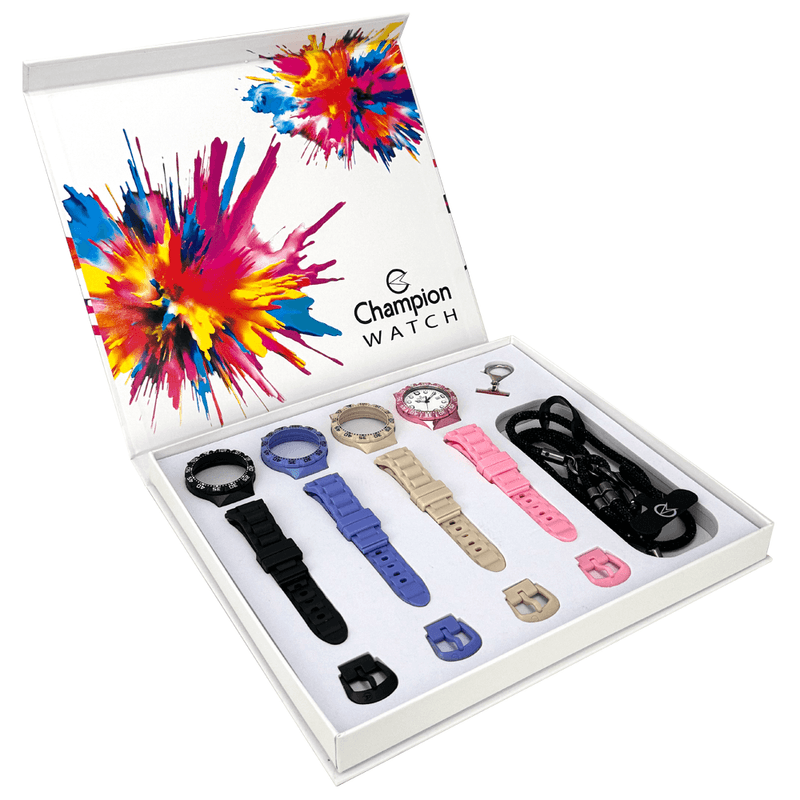 O Champion Troca Pulseiras apresenta uma caixa metálica de 42mm acompanhada por quatro pulseiras de plástico em cores vibrantes, permitindo que você alterne e combine com qualquer roupa ou ocasião. A caixa com acabamento metalizado e o novo mostrador conferem um toque ainda mais sofisticado a esse modelo clássico.