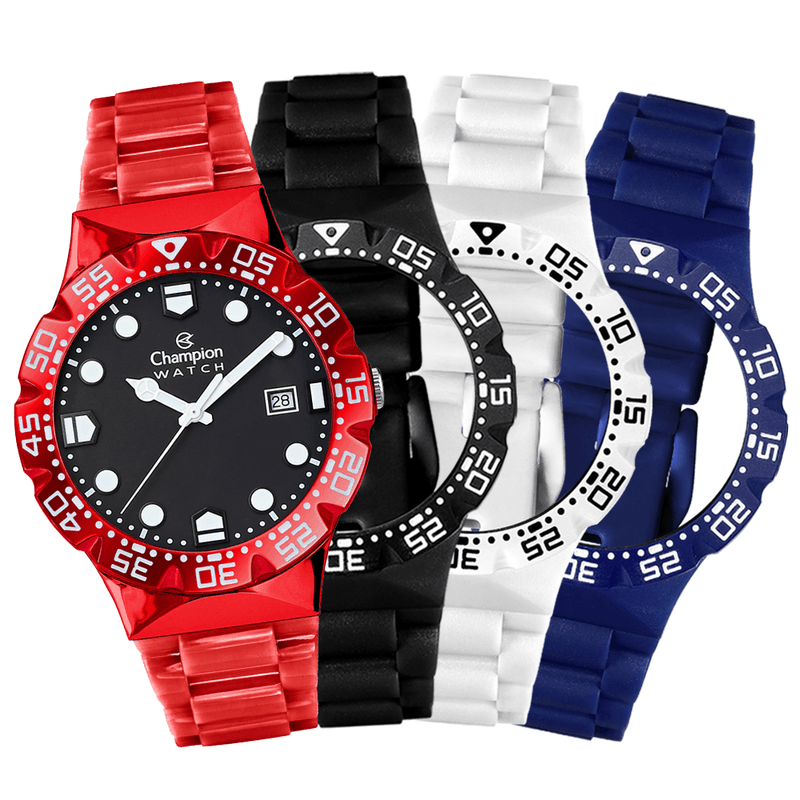 O Champion Troca Pulseiras apresenta uma caixa metálica de 42mm acompanhada por quatro pulseiras de plástico em cores vibrantes, permitindo que você alterne e combine com qualquer roupa ou ocasião. A caixa com acabamento metalizado e o novo mostrador conferem um toque ainda mais sofisticado a esse modelo clássico.