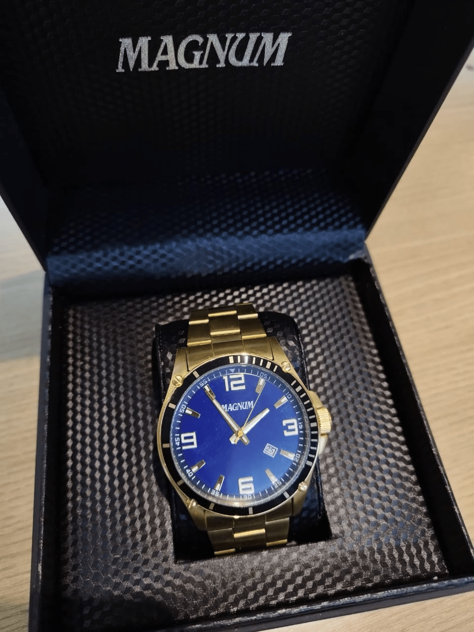 Relógio Masculino Magnum Analógico - Dourado Cor do fundo Azul