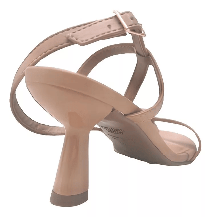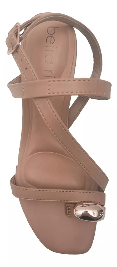 Sandália Beira Rio Salto Fino Nude com Detalhe Dourado