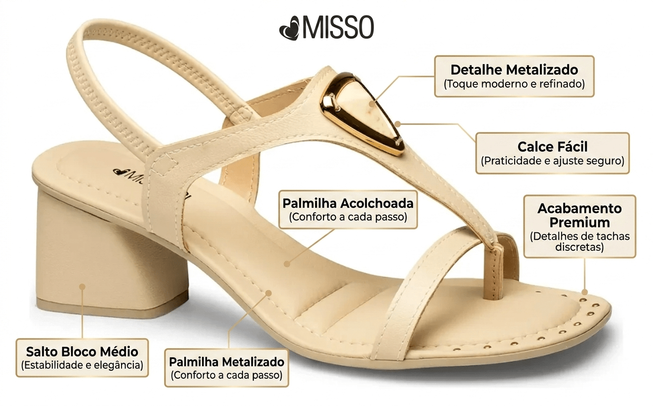 → Pensada para conforto prolongado no dia a dia - Detalhes em pedraria/metalizados