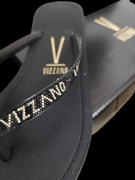 Tiras finas com brilho e logo Vizzano